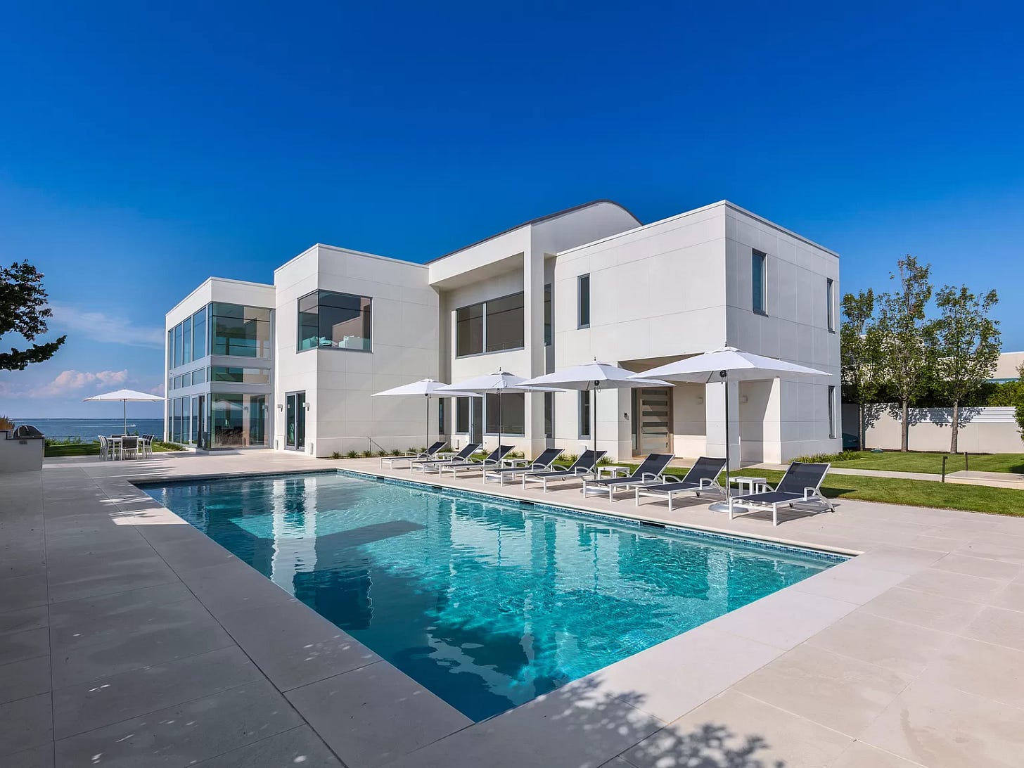 → 25 Bay St (North Sea, above) • 6BR/6.1BA 6000 SF house • Ask: $10M • 101’ of bulkhead on the beach with a double-height, glass-walled great room • Days on market: 2 • Agents: Dawn Bodenchak & Tyler Goldich, Sothebys.