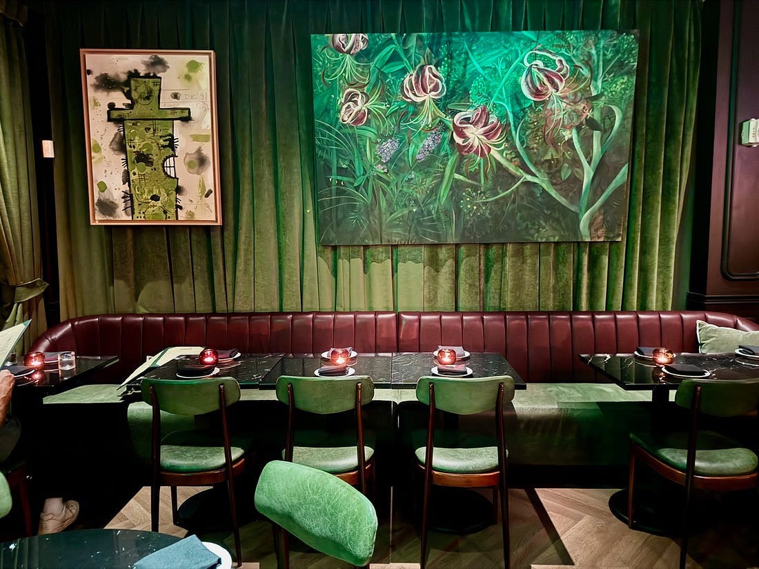 The Vibe: Modern, moody, with dim lighting that mainly serves to illuminate walls covered in art from co-owner Andre Sakhai’s enviable collection (Picasso, Basquiat, et al.). Passing through the curtained entry feels like stepping into an exclusive Greenwich Village nook traversed by well-heeled locals and in-the-know visitors. Reservations are currently available through the membership-only app Dorsia, and the crowd looks the part. At the table next to mine, a boisterous party reminisced about their startup’s pre-IPO days. My second trip to the restroom, akin to a mini gallery, was as much an excuse to admire the funky art as it was to pamper with the Aesop products lined up on the vanity.