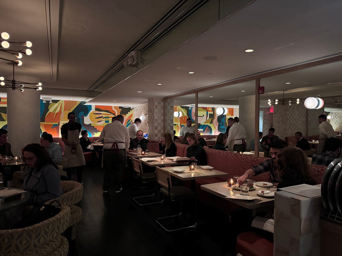 The Vibe: Little Maven is a nightly party hosted by Capon, who works the two dining rooms with unbridled joy. (Also making rounds the night we visited: entrepreneur Gary Vaynerchuk, who — along with Capon and two other partners — runs VCR Group, the restaurant group behind Little Maven and the forthcoming Flyfish Club.) Throw in an active bar scene up front, and the volume here hits 11.