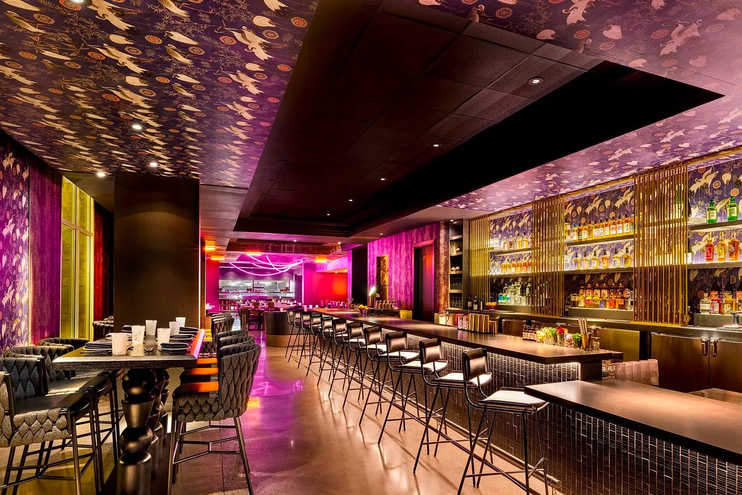 There’s a bit of a nightclub feel to the space, with graffiti-esque murals and neon rope lights, which, frankly, fits the mood at the sprawling resort. (The property has a bit of everything: kids screaming down a giant waterslide, almost four dozen pickleball courts, and a massive spa with an adults-only pool and turquoise massages.)