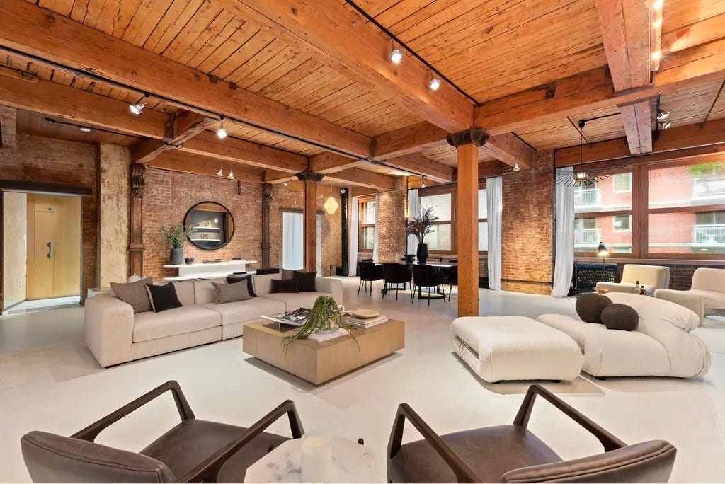 → 525 W. 22nd St., 2F (Chelsea) • 3BR/3BA, 3000 SF condo • Closing ask: $6.75M • 13’ ceilings in Spears Building with 10’ x 20’ terrace • Days on market: 82 • Monthly taxes: $2260; Maintenance/CC: $2891 • Agents: Ariel Tavivian, Anna Kwon, and Yair Tavivian, Elliman.