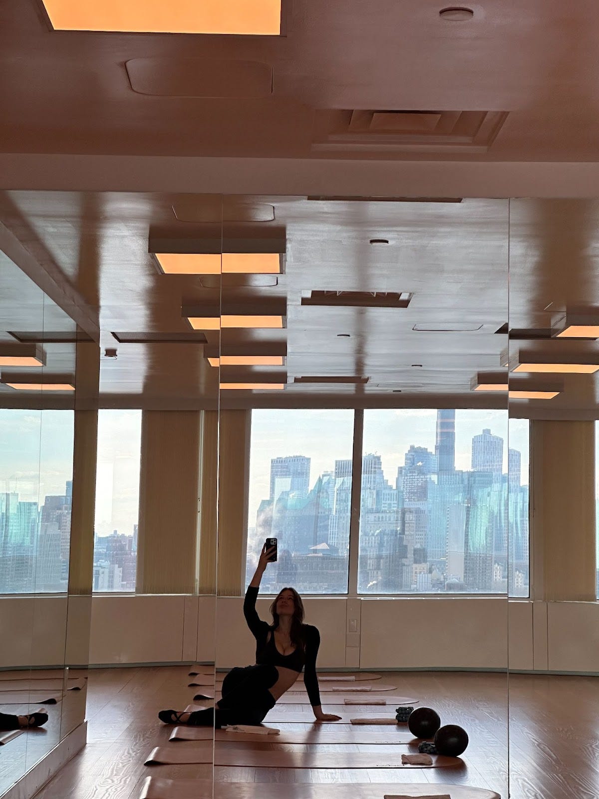 I run Mnd Bod Pilates out of WSA on the 23rd floor, and I love getting in early before the day starts. First thing, I burn a little palo santo, spray down the mats with (a French brand I’ve been trying) Ofa Karri, and light a few candles. There’s always music playing, usually something soft and grounding, to ensure I’m feeling centered and ready for the day. I teach and train every day, so I’m always in person, moving, adjusting, and keeping the energy high.