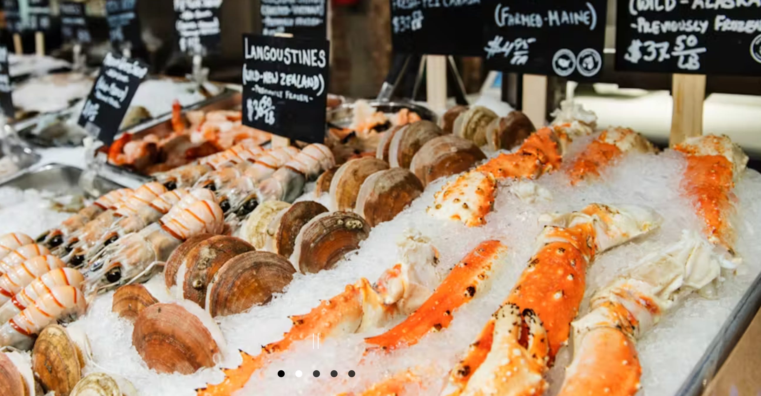 Tin Building (Seaport), fresh seafood and Fulton Fish Co. raw bar