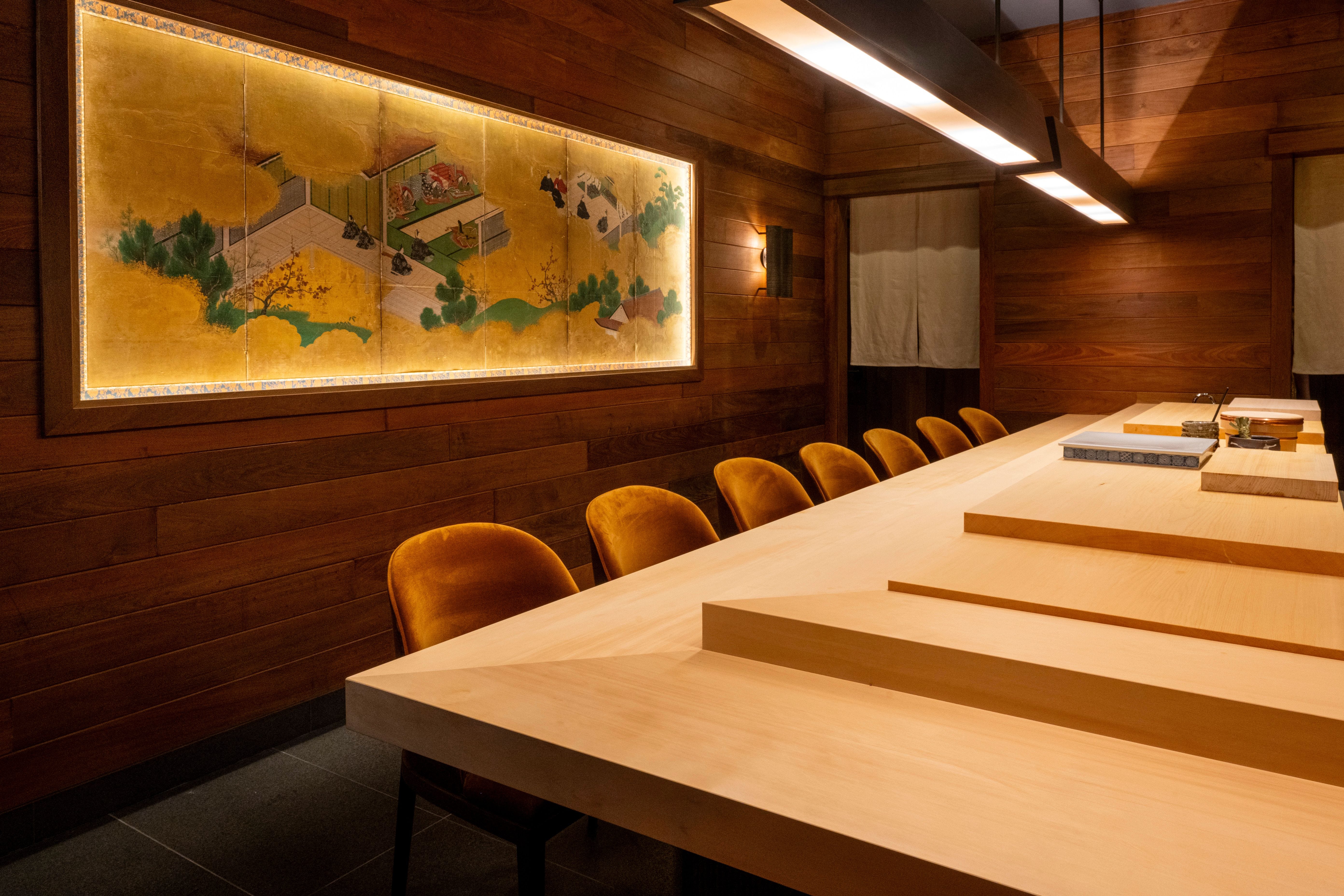 The Experience: Ichimura’s seasonal Japanese seafood menu is roughly 20 courses and runs $425 before tax and tip. Anchoring the minimalist, manicured space is a pristine 200-year-old cedar wood counter, flanked by 10 velvet seats.