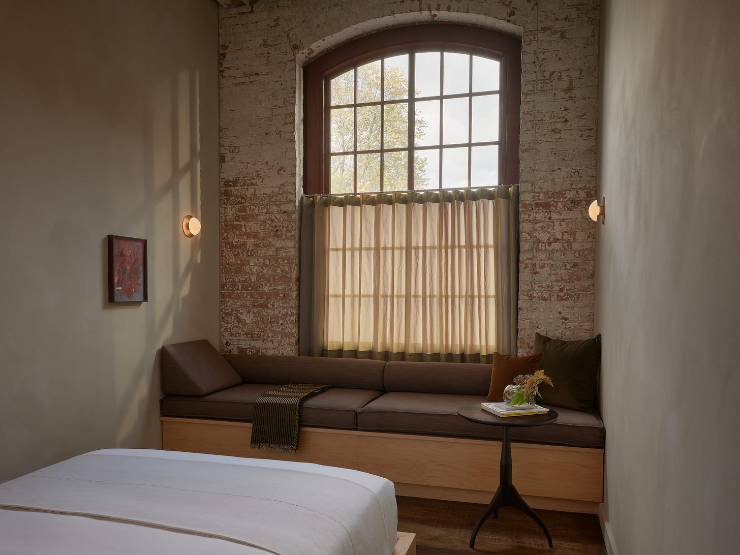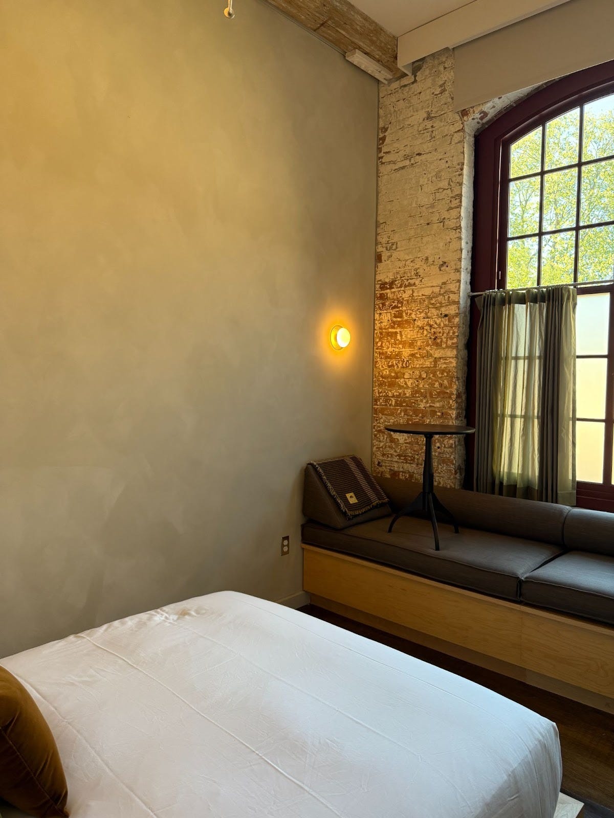 The adaptive reuse project is one of the largest undertakings of its kind in Hudson, the work of a group of local hospitality veterans and interior design/architecture firm Charlap Hyman & Herrero. In addition to rooms, almost half the hotel’s footprint is retail and gallery spaces, serving as the new storefront for the high-end boutique Kasuri, and the new SHOW : ROOM, a 6500-square-foot homeware and design space for curated vintage goods and exclusive retail spaces for brands like Zak & Fox.