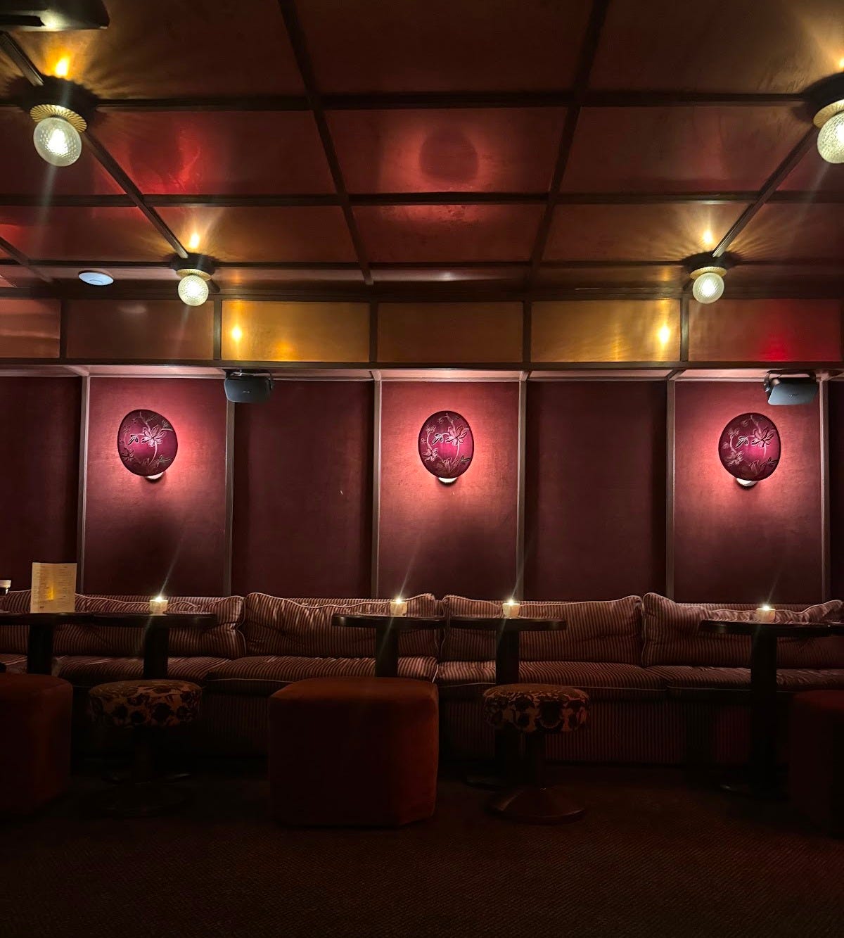 The Vibe: A cross between an evening club and an art salon. The unmarked facade leads to a red-lit vestibule where a host awaits. From there, a literal curtain is pulled back to reveal three distinct, well-designed rooms. First, a parlor complete with a long, mahogany bar, cozy booths, and roaring fireplace. Second, a spacious lounge with mauve velvet walls, vintage fabric lanterns, and plush striped couches that's used for private events. Third, an elevated atrium room with another bar, silky cream drapes, and a few smaller tables. Each room has a rotating roster of pieces on display from up-and-coming artists, all available for purchase.