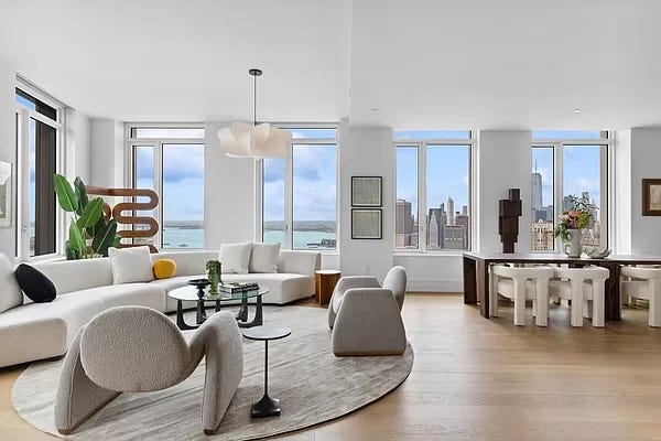 Closings began last year, and last week, two high-floor, three-bedroom duplexes were the biggest sales in Brooklyn. Both took million-dollar price cuts to get there. Unit 30C, last asking $4.95M, originally came online for $5.995M in 2022. And Unit 28C, also at $4.9M, was down from the 2022 price of $5.895M.