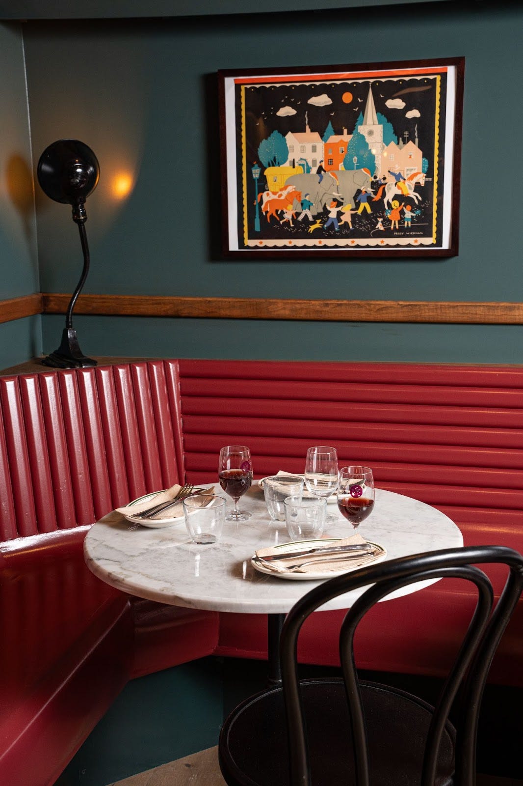 The Vibe: Warm, casual, and lively, with a great soundtrack by co-owner Mike Fadem. The noise level is less ideal for soft-spoken diners, but perfect for a relaxed date night or catch-up with friends. The space channels a modern trattoria vibe, with wood-panelled booths, a stainless steel bar, vintage lighting, and eclectic art.