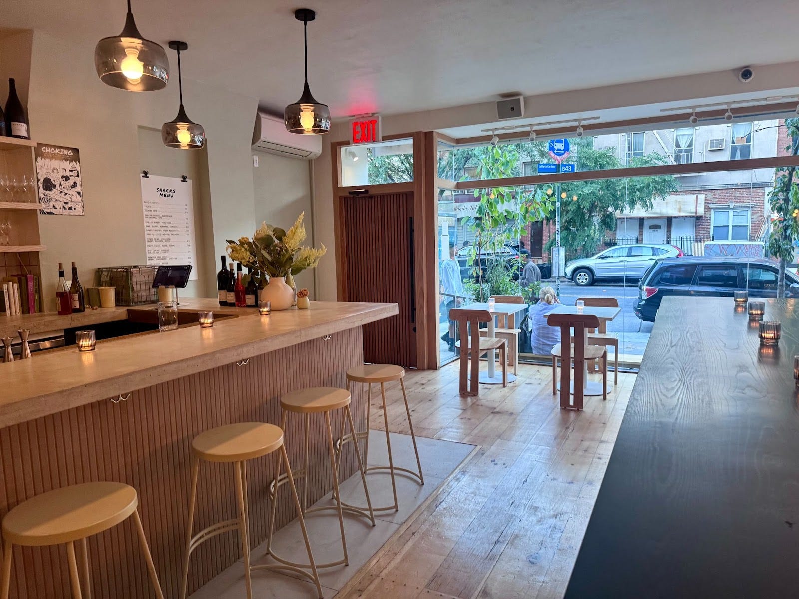 The opening of a new natural wine bar outfitted in the pale wood aesthetic likely wouldn’t cause a ripple in Fort Greene or Clinton Hill. But on an upper stretch of Graham Ave. in East Williamsburg, it’s something of a happening. Plus de Vin, which opened last month in the space formerly occupied by shuttered neighborhood restaurant Pheasant, is the work of a trio of pedigreed industry vets: husband and wife Carenn Mackinnon (previously of Estela and Frenchette) and Max Mackinnon (current chef and partner at Libertine), along with Chad Carey, who runs a San Antonio restaurant group.