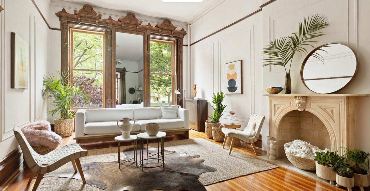→ 34 Mount Morris Park West (Harlem), 8BR/6BA multi-unit townhouse, 5925 SF (entire). Asking price: $5.9 million. Monthly taxes: $756. Days on market: 49. Listing broker: Shina Amwar, Compass.