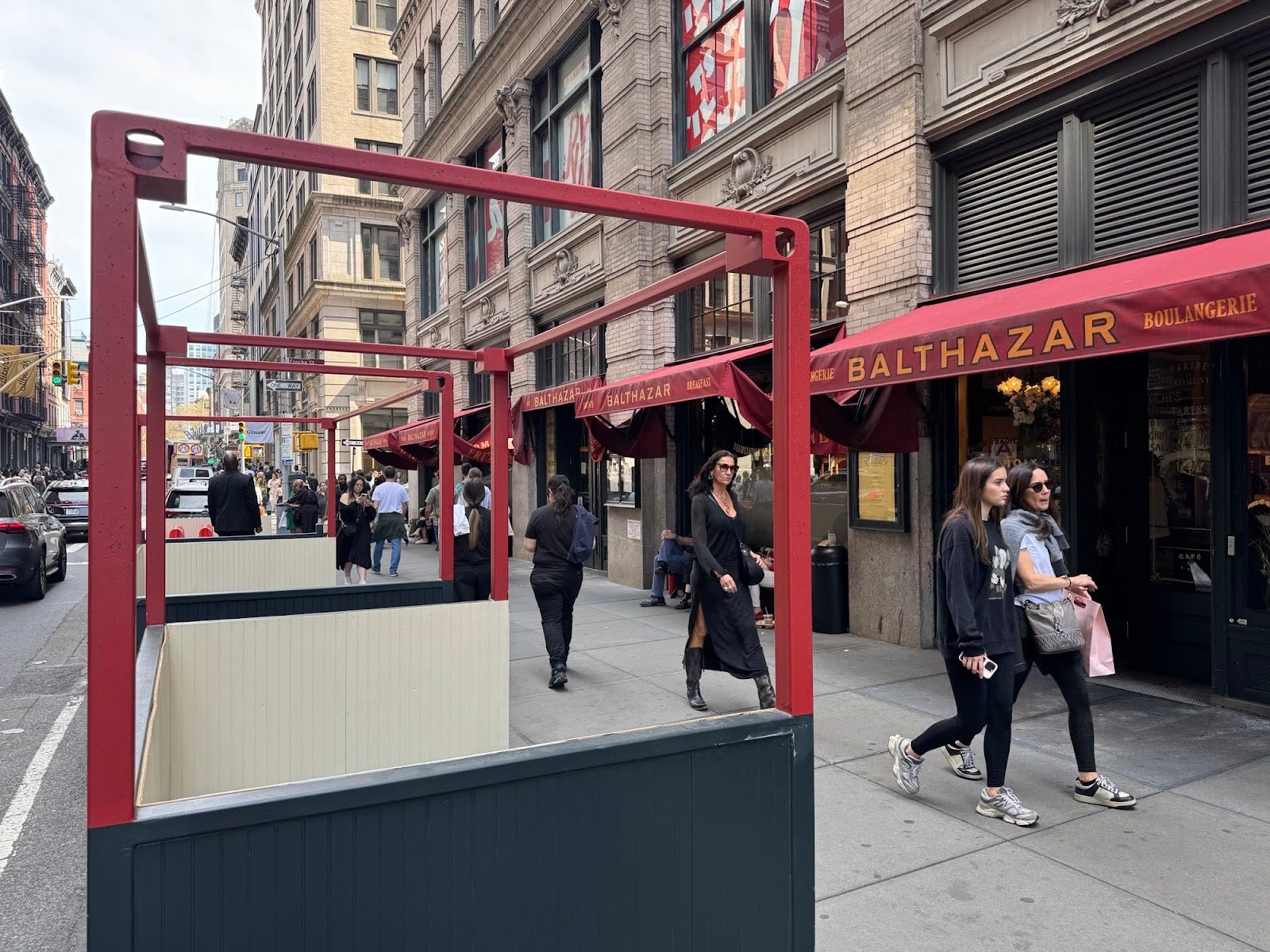 “Checking in with important news. Balthazar’s outdoor dining is back.” Reserve.