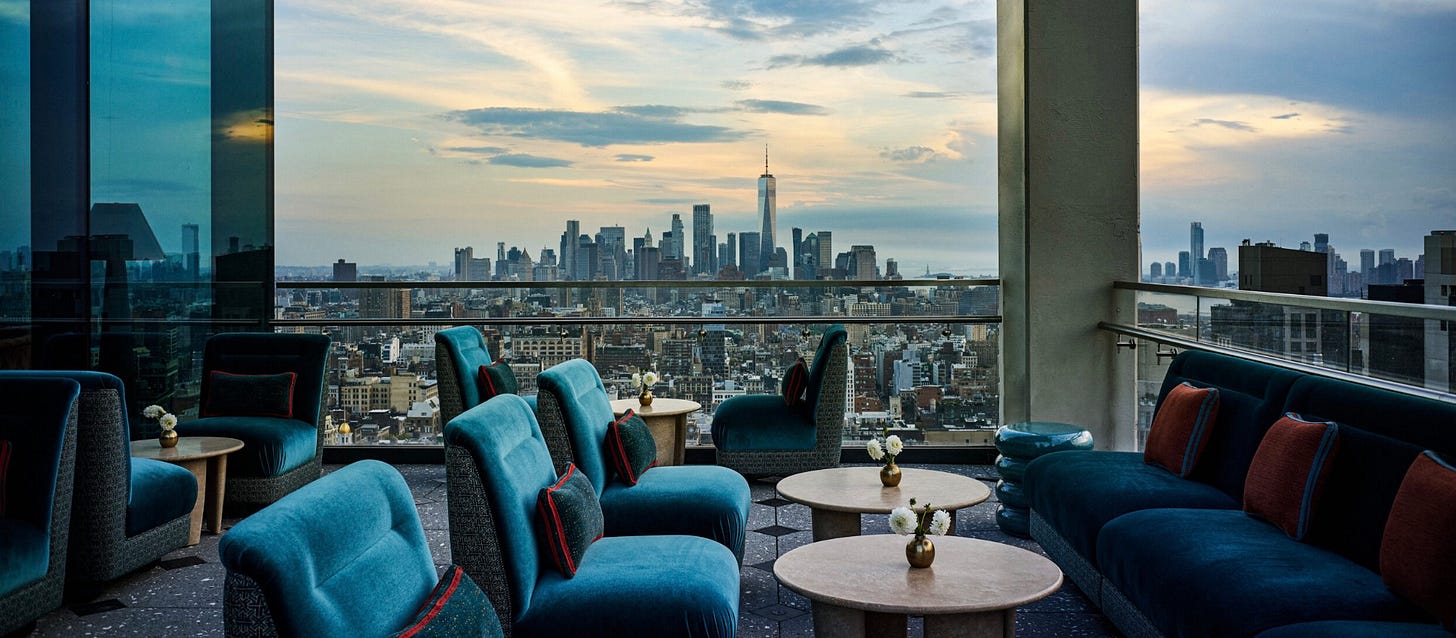 Overstory (Fidi), wraparound 64th floor terrace with serious cocktail program
