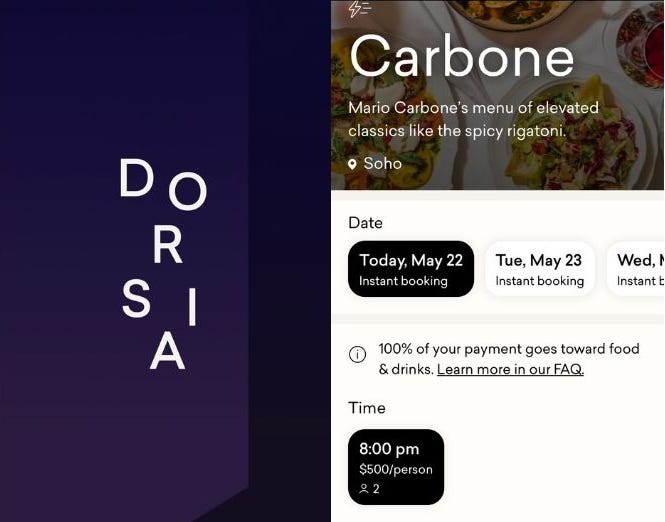 On Dorsia, one books as oneself and pre-pays for a guaranteed minimum spend for that night. For most nights at Carbone, that’s $500 per person.