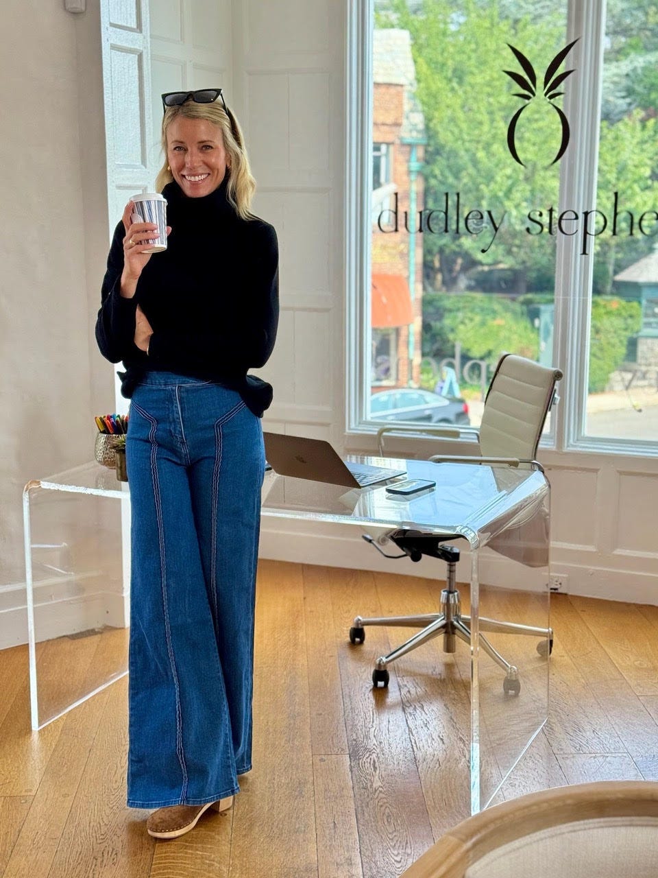 Tuesdays are our in-office days at Dudley Stephens. After dropping the kids off at school, I take our mini Australian Shepard (Bluey) for a walk and then head to the office where our team meets for in-person meetings, fittings, and/or photoshoots. We have a showroom and office space in the heart of Greenwich, where I also live. It’s a magical space, with lots of character and a very homey vibe.