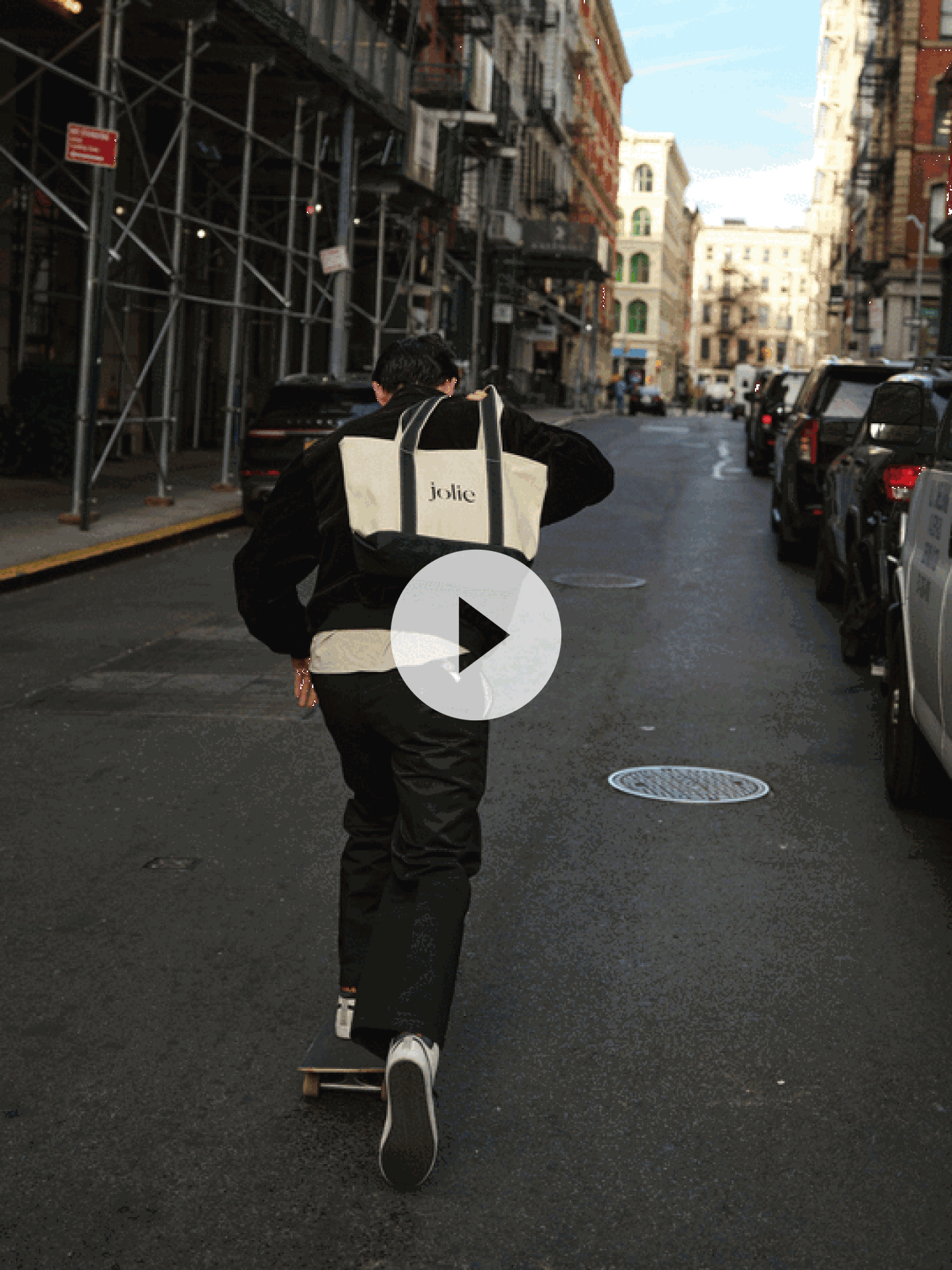 The Jolie Tote bag, included for free with every Jolie purchase starting now through the weekend. See it in action.