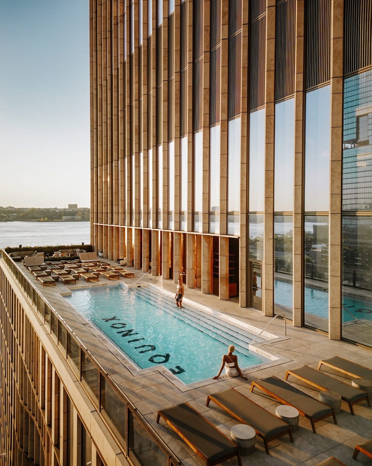 The piece de resistance is the rooftop pool deck with views spanning the Hudson River and Hudson Yards. It’s a scene year-round, comparable to a Soho House pool; ideal for sunbathing in the summertime and soaking in the winter when it transforms into a hot tub. There’s also the restaurant Electric Lemon by Stephen Starr with a buzzy bar and fashionable outdoor terrace.