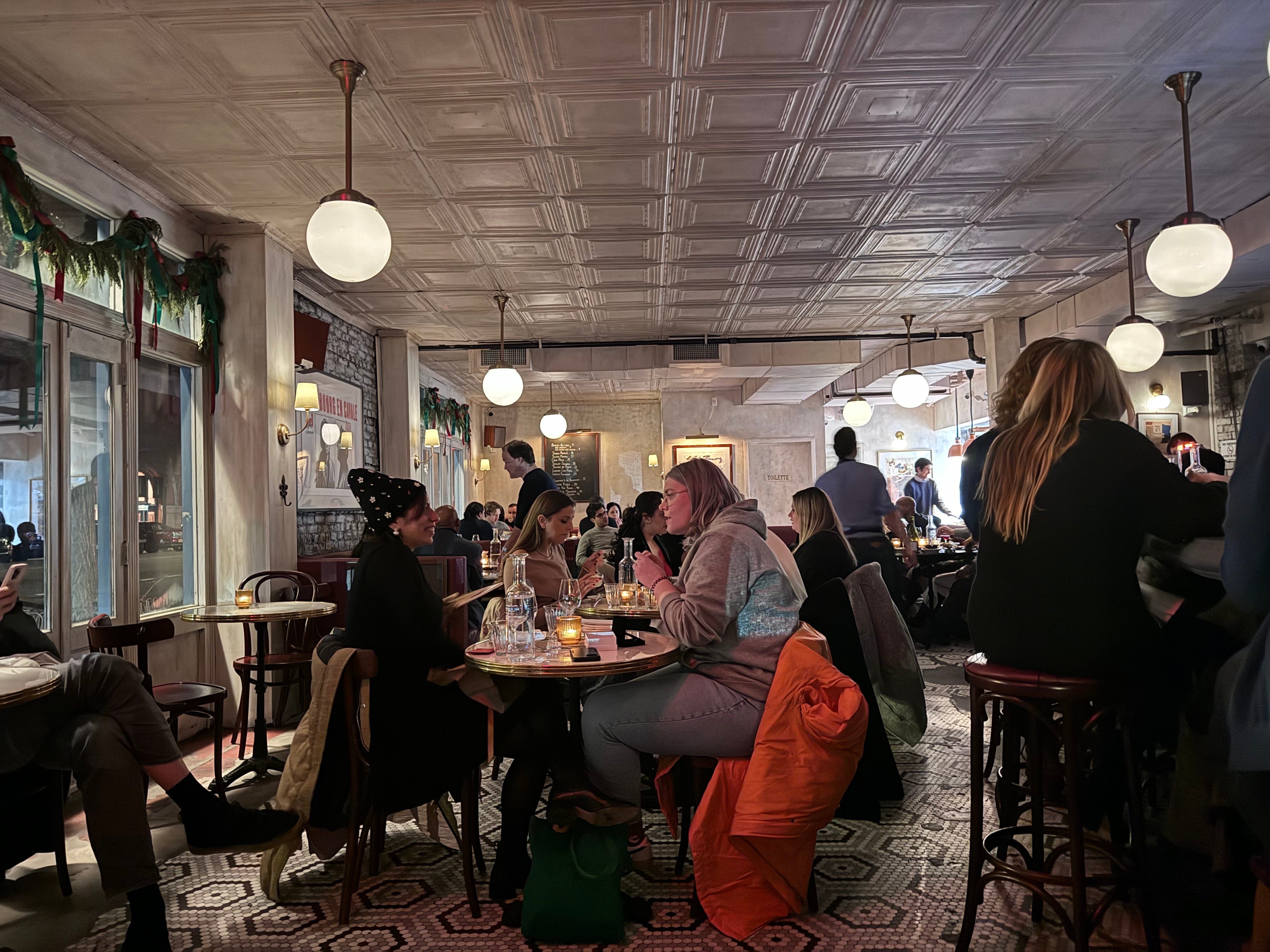 The last time I was at Libertine was that June night the smoke from Canadian wildfires turned the New York City sky orange. As we scrambled into the (then-brand-new) restaurant, the vibe in the West Village was surreal. But once seated inside this nouveau bistro, the experience transported us to spring in Paris. Last month, during a return visit on the shortest day of the year, Libertine brought to mind a chilly winter evening in the City of Lights. (Try the excellent trout beurre rouge, new to the menu, and order the rice pudding for dessert.)